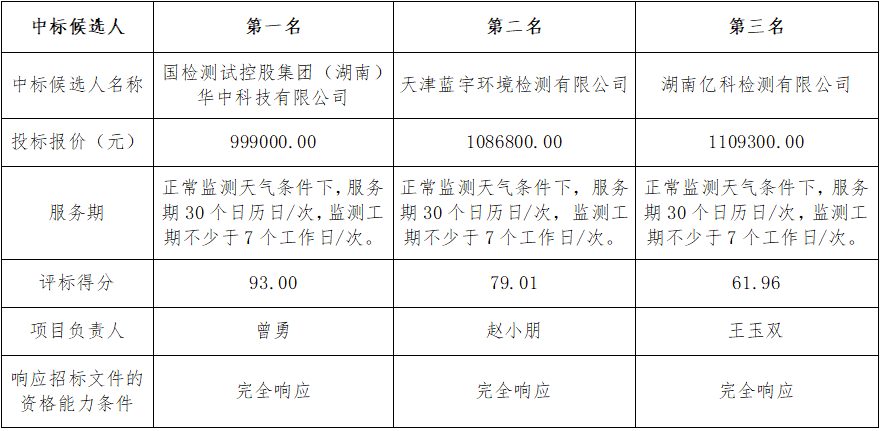 被否决投标情况:湖南品标华测检测技术有限公司因未按招标文件要